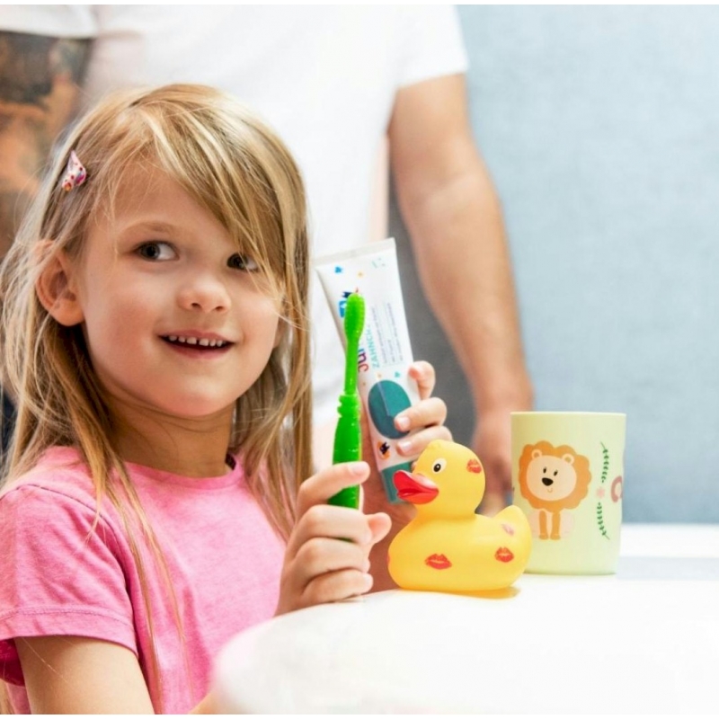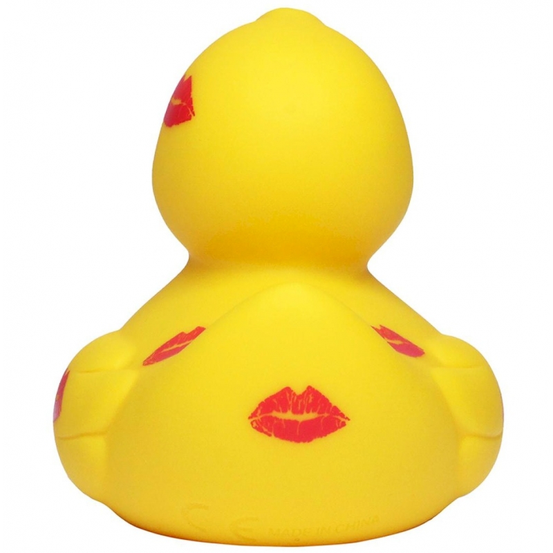 De hoogte van de badeend met kusjes is ongeveer 8 cm hoog.